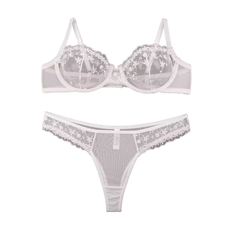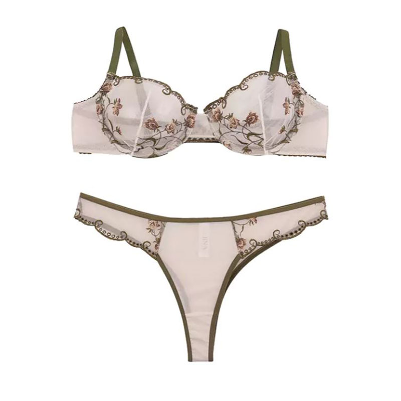 ست شورت و سوتین توری فنردار لبه دالبری گلدوزی